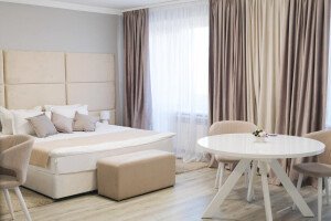 В каждом номере есть все необходимое: набор для приготовления чая и кофе, категории номеров Комфорт оснащены СВЧ, утюг и гладильная доска предоставляются по запросу. В номерах категории Аппартаменты предлагаются дополнительное пространство и полностью оборудованная кухня с электроплитой, стиральной машиной и посудомоечной машиной.
